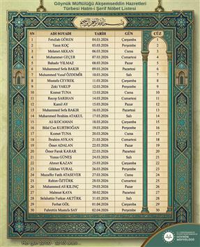 Akşemseddin Hazretleri Türbesi Hatm-i Şerif Listesi