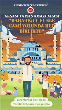2025 Aile Yılı Kapsamında Baba-Oğul El Ele Cami Yolunda Hep Birlikte Programı Yapılacaktır.