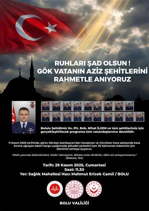Bolulu Şehidimiz Hv. Plt. Bnb. Nihat İLGEN ve tüm şehitlerimiz için gerçekleştirilecek programa tüm vatandaşlarımız davetlidir.